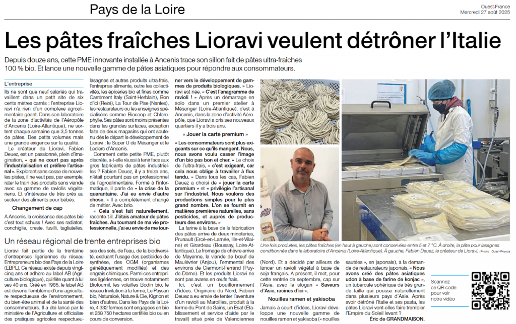 Ouest France : Les pâtes fraîches LIORAVI veulent détrôner l’ItalieNOUVEAU