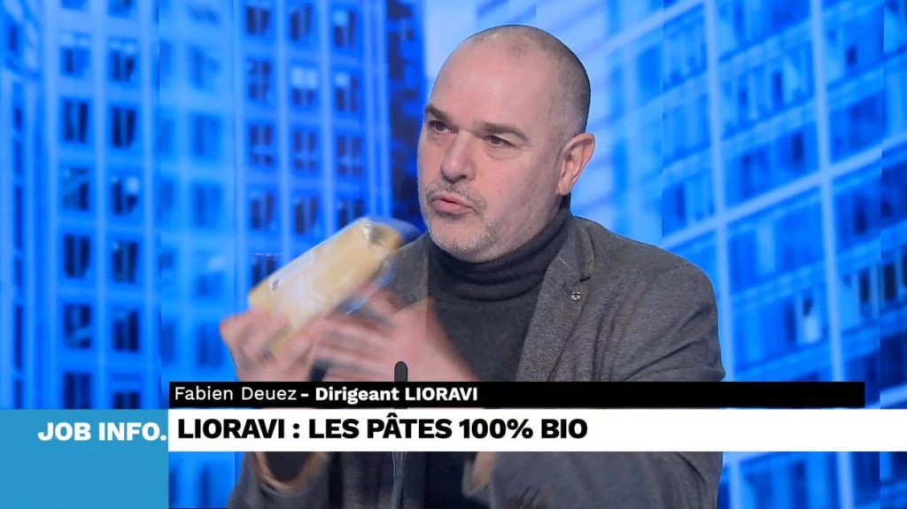 Fabien en direct sur le plateau de TéléNantes pour présenter Lioravi. Depuis 2013, notre entreprise artisanale s’engage à proposer des pâtes de qualité, élaborées à partir d’ingrédients 100 % bio et issus de filières locales.